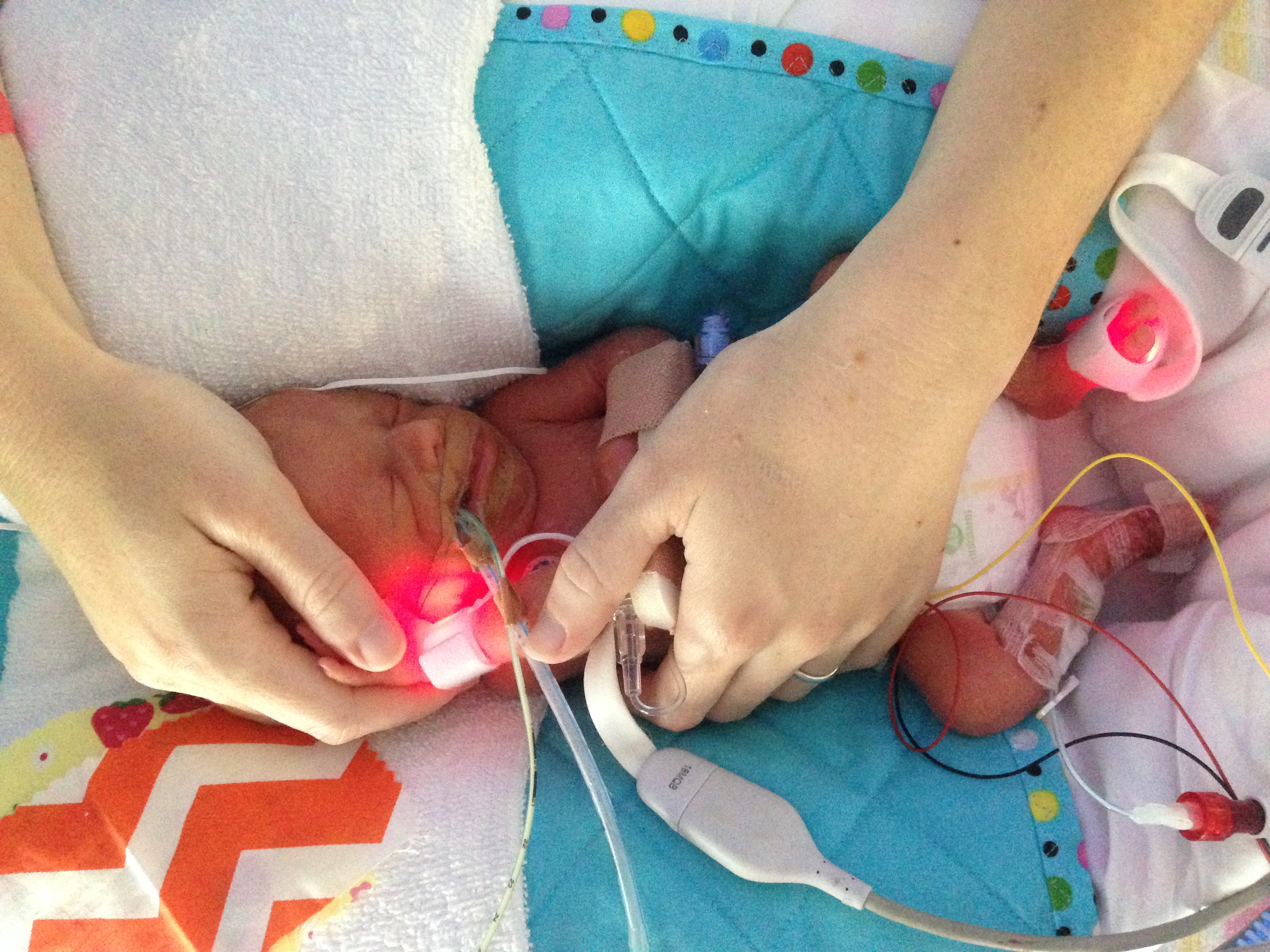 As soon as he was born, Lachlan was whisked into the Newborn Intensive Care Unit (NICU). He needed help to breathe via a mechanical ventilator after one of his lungs collapsed. He then moved onto a NAVA ventilation- a machine that used an electrical signal from Lachlan’s diaphragm to help him breathe. He was also on CPAP respiratory support for five weeks, whereby a mask was positioned over his nose and oxygen was blown into his lungs at a constant pressure to keep them functional. He had three blood transfusions. The staff prepared special medications to help him grow, and fed him fortified milk.